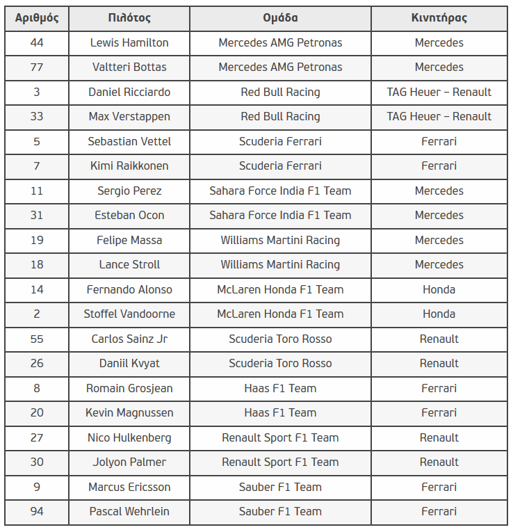 Αυτό είναι το οριστικό γκριντ της Formula 1 για το 2017